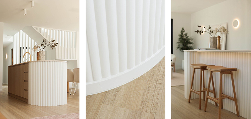 Till now, Surround by Laminex has only been recommended for flat and wall panel applications. We’re happy to announce Surround by Laminex can now officially be used on curves, bends and on ceilings (see our how-to guide on how to work on ceilings) significantly changing the way you are able work with the product and add new, expressive detail to your designs. From penthouse beach apartments to new builds on the Gold Coast, Surround by Laminex profiles are a versatile product suitable for any space - explore examples of how effective our products are for curved surfaces below.