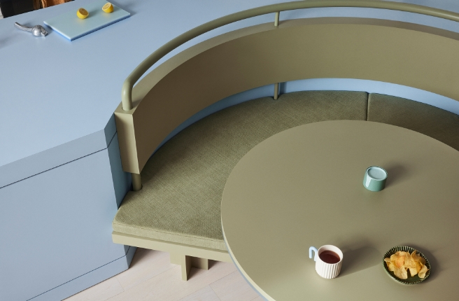 Contributors Campaign: Laminex Design: Studio Doherty Photographer: Derek Swalwell Stylist: Natalie James Art Direction: Ortolan Joinery: Evolve Interiors Splashback: Artedomus Appliances: Fisher & Paykel Floor: Woodcut Featured in these designs Back Bench Laminex Surf Laminex Just Blue Laminex Terril (Internal) Artedomus Sugie Series (Splashback) Fisher & Paykel Appliances Linear Standard Brave Handle Island Bench, Hanging Shelf and Banquette Laminex Just Blue Laminex Olivine Laminex Weathered Ply Table Laminex Olivine Laminex Smoked Birchply Pantry Laminex Kalamata AbsoluteMatte Laminex Coastal Sunrise Laminex Just Blue Laminex Pale Honey Floor Woodcut European Oak in Pearl White