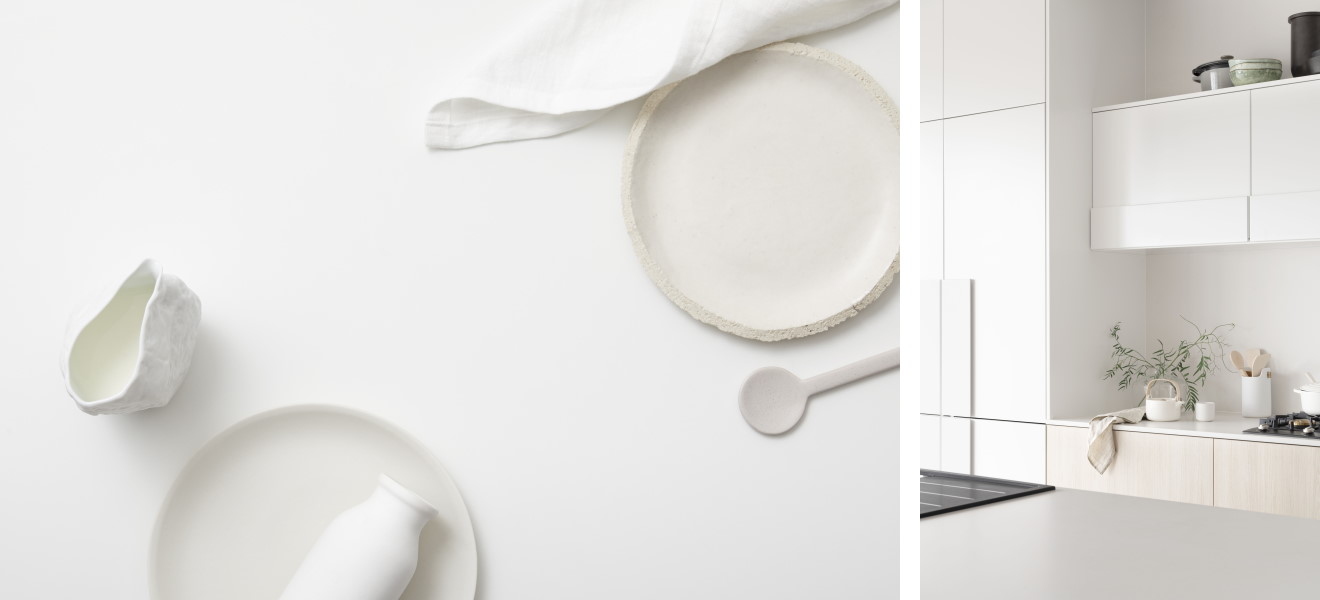 “A warmer white or neutral can create harmony in a space, by creating less contrast with other finishes, particularly natural materials or timber-look decors. The effect is calming, promotes wellness and can reduce the stress of our everyday lives.”