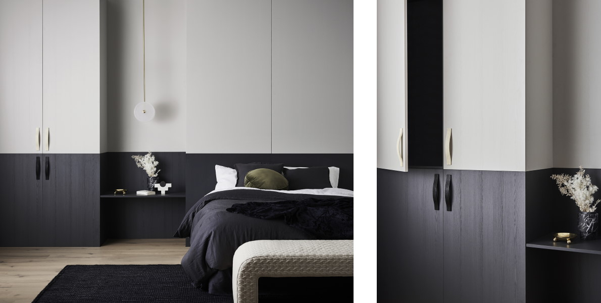 With so many beautiful contemporary neutral decors in the Laminex Colour Collection, we asked Leech to pick three that she’s most looking forward to designing with. Her first choice was Laminex Oyster Grey in PureGrain finish. “Oyster Grey is a warm, calming grey that works back with other natural hues, particularly charcoals and browns. And the PureGrain finish is great for adding tactility to a space, with its subtle painted-woodgrain effect,” says Leech. “It's perfect for tonal colour palettes and creating a softness in an interior while adding a sense of luxury.”