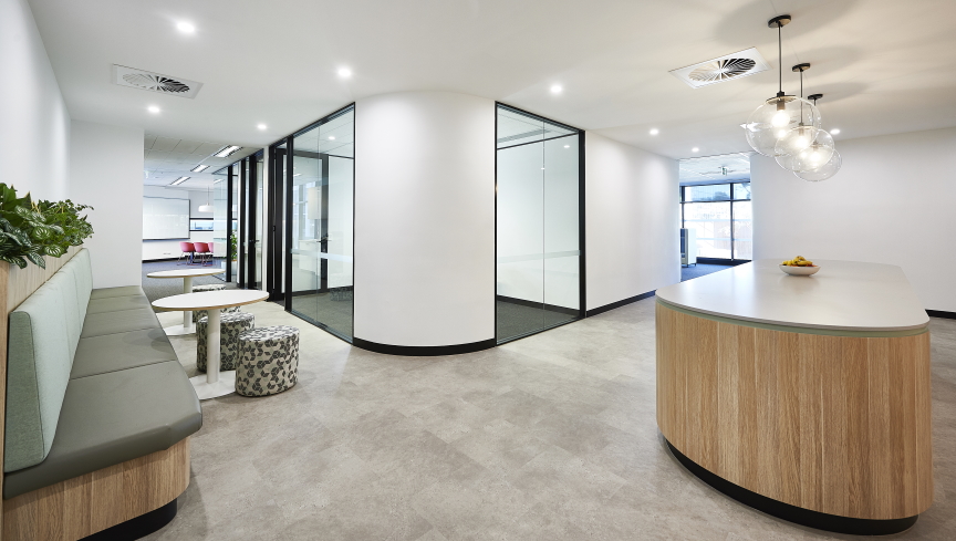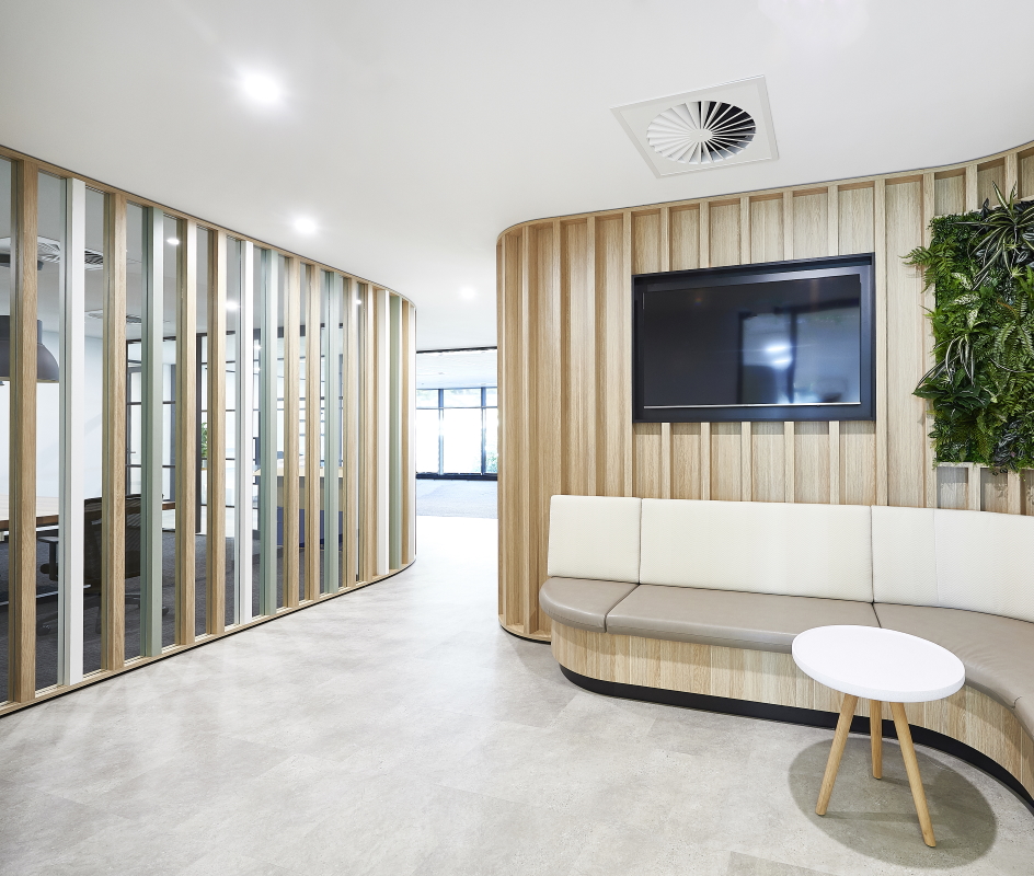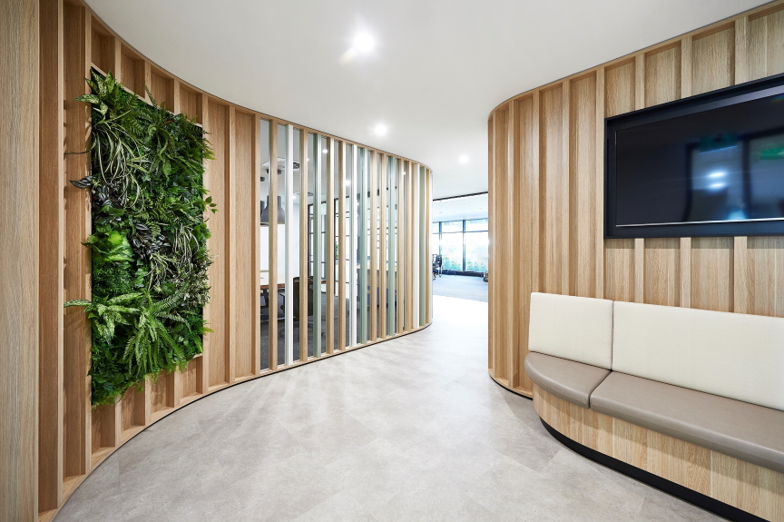 Curves and woodgrain at the Arbonne office fit-out