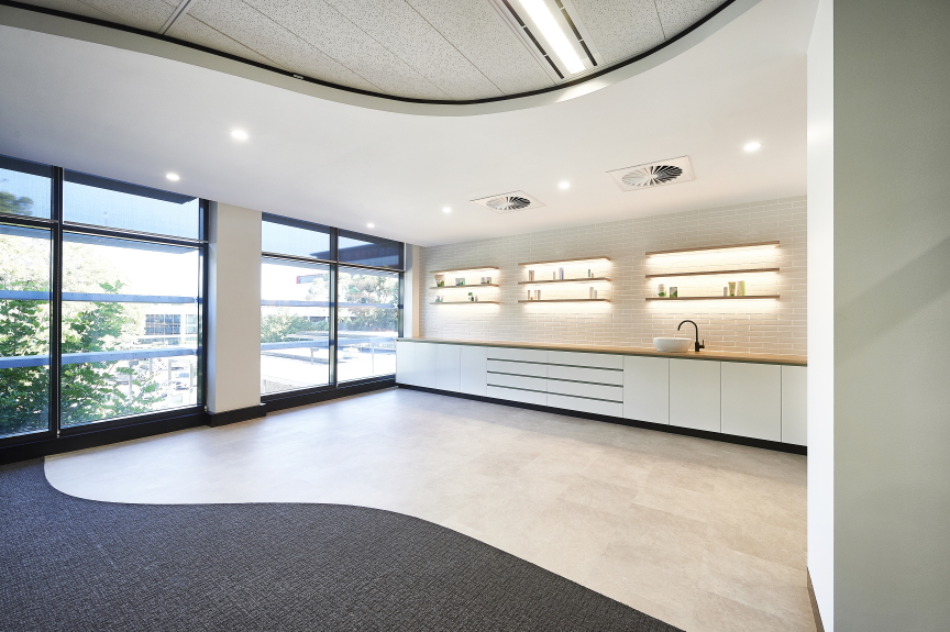 One recent project that showcases the breadth of C2G’s expertise is the office fit-out in Macquarie Park for international skincare brand Arbonne. C2G was contracted by InOne Projects to supply the entire joinery package, including shop drawings and manufacturing and installation of all joinery. It’s a cleverly designed and meticulously crafted space, most notable for a proliferation of curved surfaces fabricated with Laminex laminates.