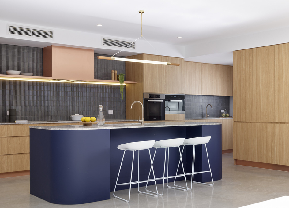 The popularity of curved designs has spread from the furniture fairs of Europe to the homes of Australia. In place of square forms and sharp edges, we're seeing cabinetry and island benches with rounded corners introducing an organic softness to residential kitchens. This softness is a natural fit for calming, gentle colour palettes. And it's an ideal fit for laminates from Laminex's Minerals collection - imagine how much easier and more affordable it is creating those curved shapes with a marble-look laminate like Laminex Carrara Marble than carving them out of solid stone!