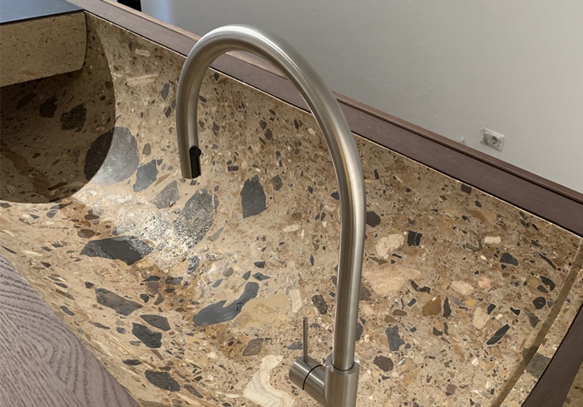 The textural beauty of terrazzo continued to be popular, not only in solid form but printed or as a pattern on textiles. For example, the Nuances rug range designed by Patricia Urquiola for GAN uses sustainable felt to create a distinct terrazzo look, while other brands, including Cassina and Moooi, showed furniture upholstered in terrazzo-like flecked fabrics.