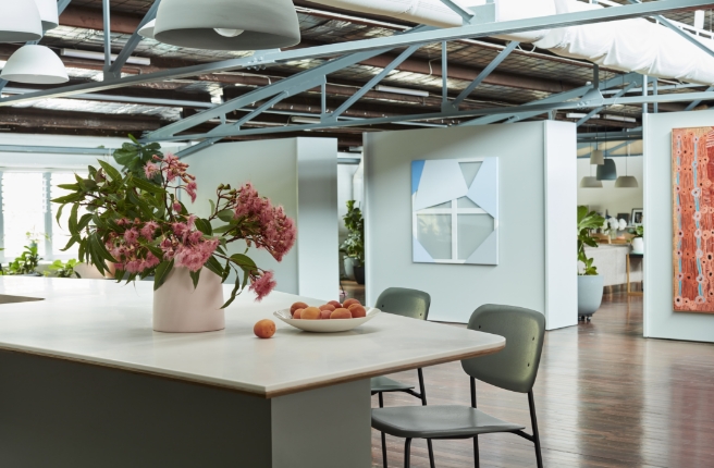 In Marrickville, in Sydney’s Inner West, Mud Australia, the handmade porcelain company gathers its team of professional and amateur ceramicists to shape and form, glaze and colour fine clay into the wonderful hues and shapes the company is famous for. DesignOffice has transformed the two-story building into the embodiment of the brand; open, airy and welcoming.
