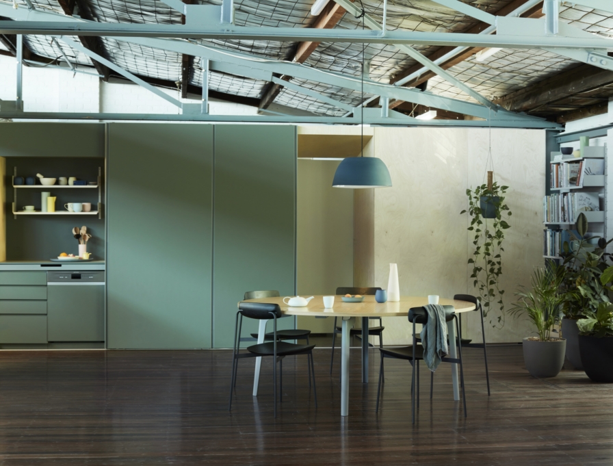 Throughout the building the colours of the cabinetry have been chosen to reflect Mud’s palette and distinct tactility. Matching perfectly with the unique surfacing of Laminex AbsoluteMatte, its use in the kitchen is bolstered by its fingerprint, stain and wear resistance.