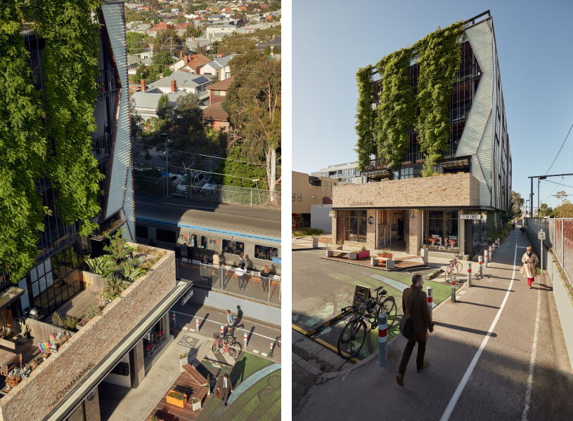 If Breathe is synonymous with sustainability, it also has a very strong association with Brunswick, the inner-Melbourne suburb where the studio is located. The team does plenty of work elsewhere, of course – for example, the elegant architectural palimpsest that is the Paramount House Hotel in Sydney – but a significant proportion of their folio is in their own neighbourhood. And it’s no accident. “We see the potential for this precinct to be a real case study of sustainable medium-density housing,” Sewall explains.