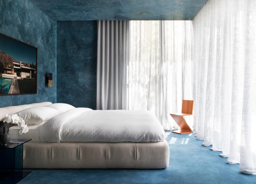 A good example of this approach is the Camberwell House, where ceilings, doors and cabinetry are painted a bold French blue, creating an irresistible sense of drama in the refurbished California bungalow. But Hing also uses colour to make spaces more liveable. In the Orchard House, for instance, she wrapped the entire master bedroom – ceiling, walls and carpet – in blue to “dial down the light”. As she explains, “Use of colour is often site-specific and, in this case, the bedroom was just swamped in light, so the colour gave it a bit of mood and made it feel like a room you want to be in and, obviously, sleep in.”