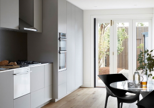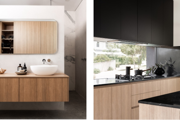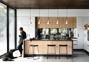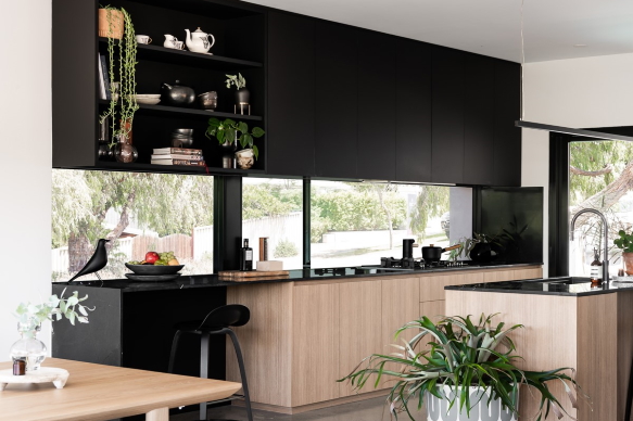 Nuic also used Laminex AbsoluteMatte Black in the kitchen, applying it to the full-height joinery and cabinetry above the sink. The clients love black and using this decor so liberally highlights the rest of the kitchen’s material palette to great effect. “As far as I’m concerned, not all black laminates are created equally, but Laminex’s AbsoluteMatte Black is ultra-matte as well as fingerprint-resistant, which makes it the ideal choice for a busy kitchen,” Nuic says. And that sentiment captures the success of this project quite neatly, because it’s at once effortlessly elegant and eminently functional, a beautiful place that will comfortably accommodate each family member at all stages of life.