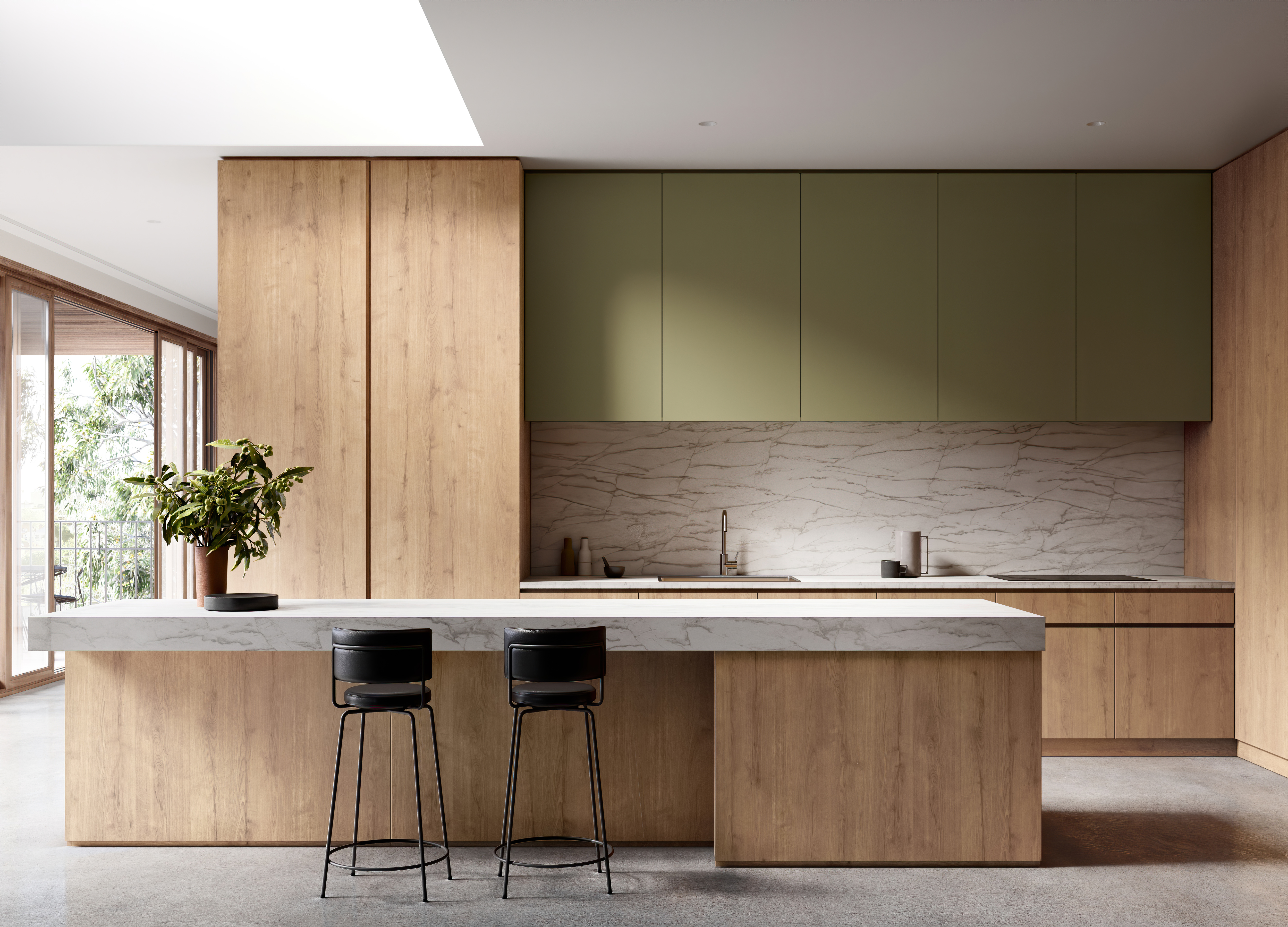 For most, Green is inherently calming and tranquil. When green and other hues drawn from nature are combined with organic forms, materials and finishes, these colours can also play a great part in increasing our wellbeing and providing relief to anxiety and overwhelm. Laminex Olivine and Laminex Hushed Pine represent the earthy, leafy green hues that are now essential to re-introduce nature to our spaces.