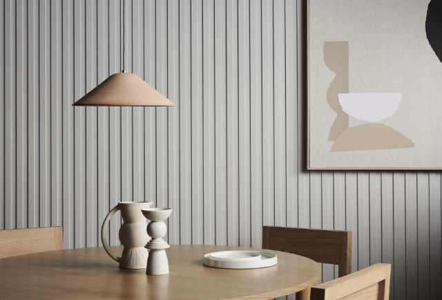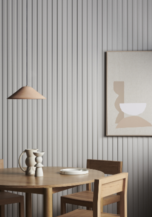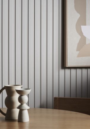 A contemporary design showcasing equally spaced battens and grooves, creating the illusion of a stripe effect. The defined edges and subtle routing create a profile ideal for adding a touch of luxury to a space.