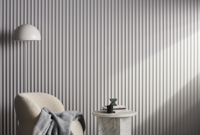 Add a contemporary touch with a scalloped design that plays on light and shadow. From narrow to wide soft undulating curves, the three choices of Scallop each offer a luxurious touch. Apply across an entire wall, or pair in tandem to create a statement surface.