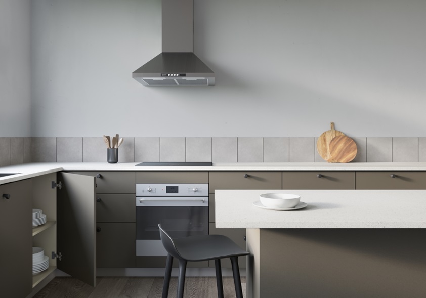 Take this colour palette to the next level by using subtle metallic accents that mirror the Brushed Silver kicker in your appliances and fittings. For a luxurious edge, incorporate coloured cabinetry interiors in Bliss Shitake.