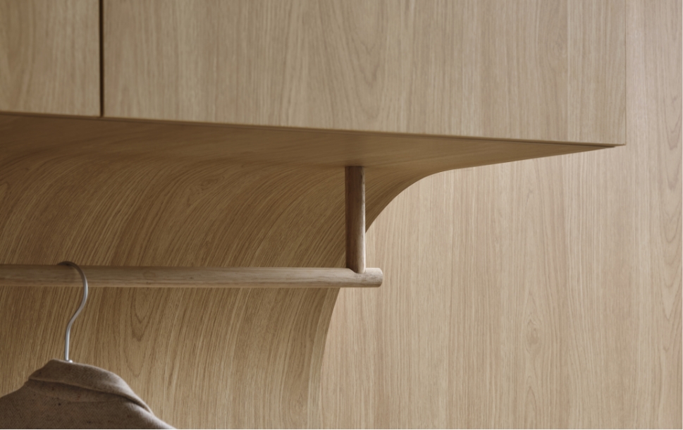 Full height panels and cupboards are finished without seams or repeat and feature consistently throughout the project. Flat panels have been made using prefinished boards, further reducing cost and waste.