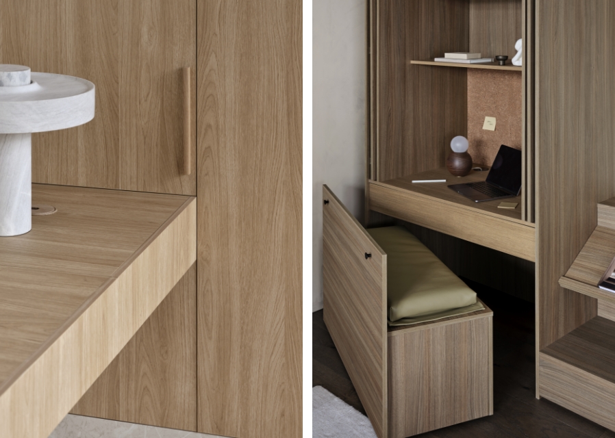 Woodgrains are what makes this collaboration sing and it’s the unexpected mix that deliver a truly surprising result that asks you to look twice to see its subtle brilliance.