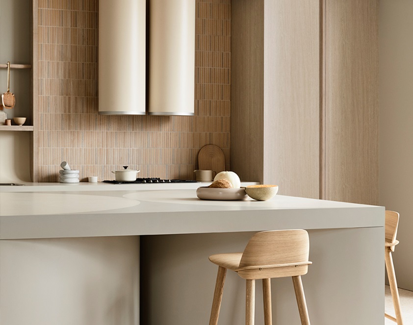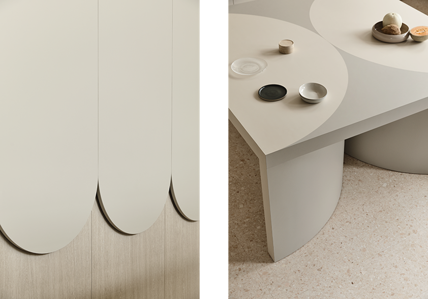 Curved surfaces and organic shapes create a sense of luxury and tactility, made possible with Laminex® laminate.