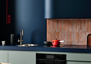Benchtop, splashback and rangehood: Laminex AbsoluteMatte French Navy
