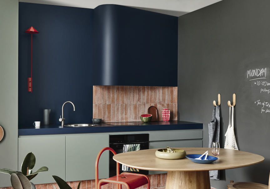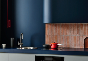 Benchtop, splashback and rangehood: Laminex AbsoluteMatte French Navy
