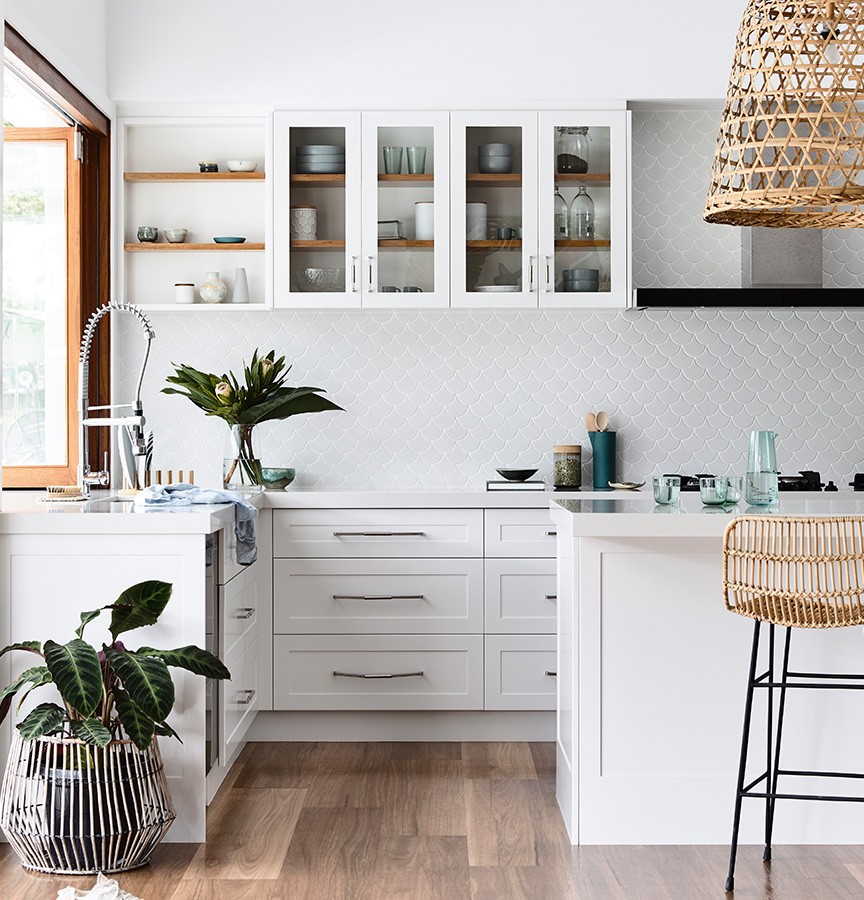 This stunning white kitchen and home makeover used the following Essastone and Laminex products to create a coastal vibe: